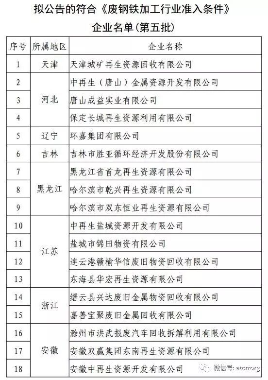 附件:拟公告的符合《废钢铁加工行业准入条件》企业名单(第五批)
